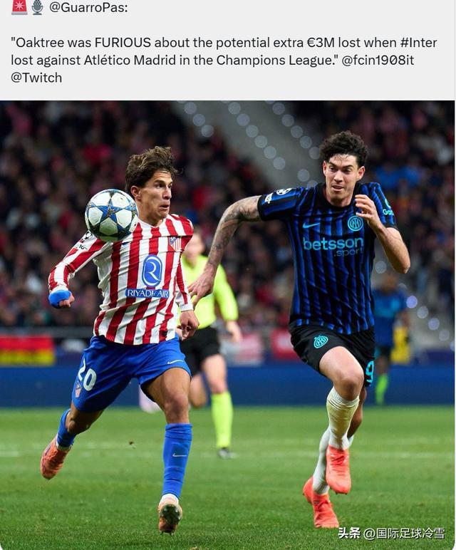 第三条新闻:跟队记者瓜罗介绍,在国米遭遇绝杀不敌马竞后,橡树资本非常愤怒(Furious)